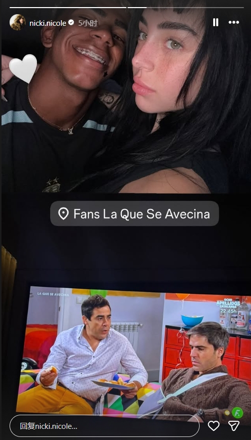 🤍亚马尔女友晒照,相拥一起看西班牙情景喜剧